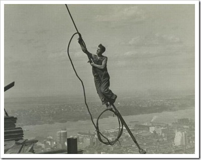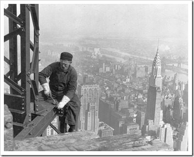 Hine não ficou famoso por sua sociologia ninguem fica, mas por sua coragem de subir no esqueleto dos prédios e tirar essas fotos do Empire State e Rockfeller Center: