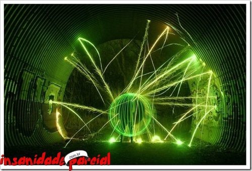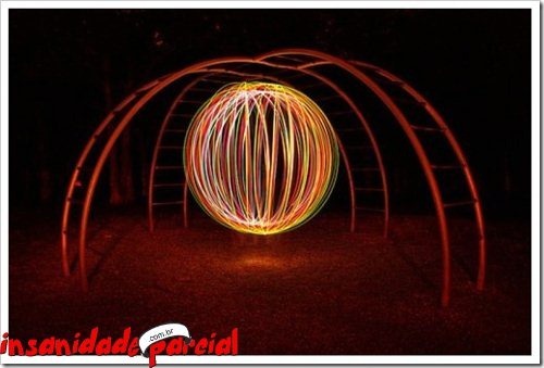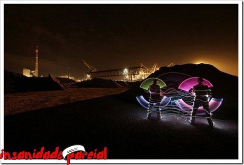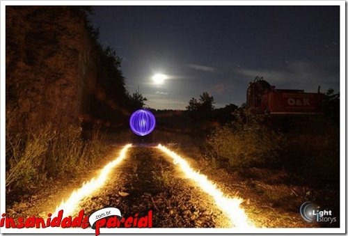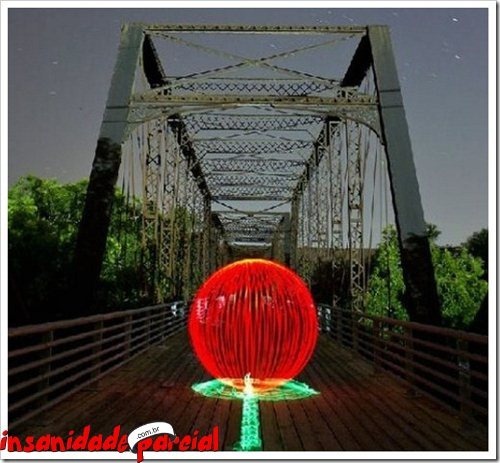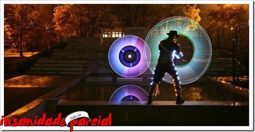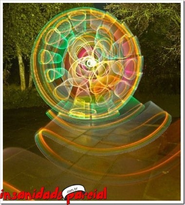 Há um tempinho foi criado na França um “aparelho” para grafitar, o Halo, ele possui um LED e dá pra combinar várias cores. Usando alguns macetes com uma câmera e SEM PHOTOSHOP dá pra fazer isso: