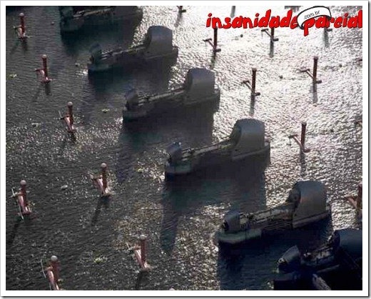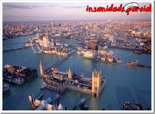 Devido ao aumento do nível dos mares, o rio Tâmisa transbordou e alagou até o parlamento.