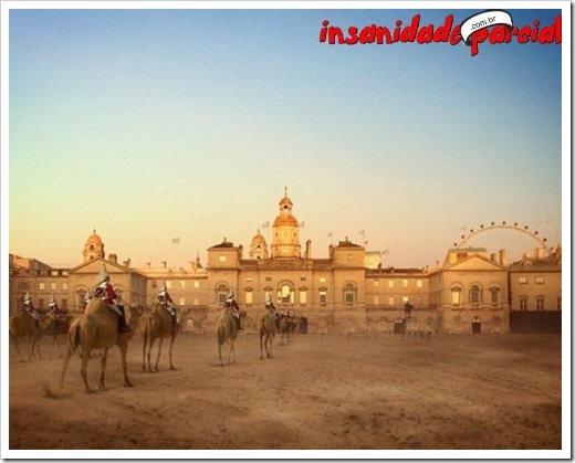 Os cavalos da guarda real foram trocados por camelos, pois vendem muamba resistem mais ao calor.