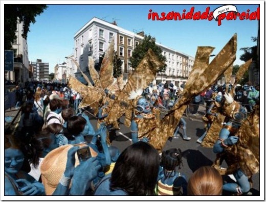 O carnaval de Notting Hill só pode ser visto nas ruas com a ajuda de poderosos protetores solares, que deixam todos avatarizados.
