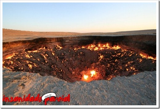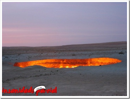 Isso fica no deserto de Karakoum e na verdade seria uma mina de gás, tem 60 metros de diâmetro por 20 metros de profundidade.