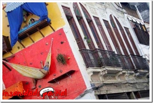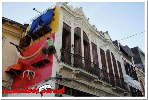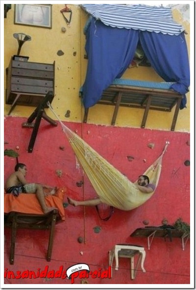 Os caras colocaram sofá, rede, TV e até um gramofone na parede :S