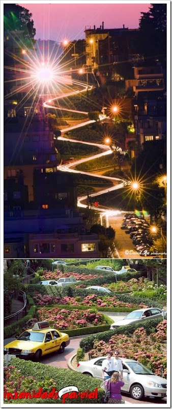 Essa é a Lombard Street, fica em São Francisco, EUA, imagine-se você, mulher, descendo uma rua dessas.