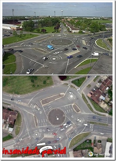 Pois é, esse troço fica em Swindon, no Reino Unido e é chamado de Magic Roundabout.
