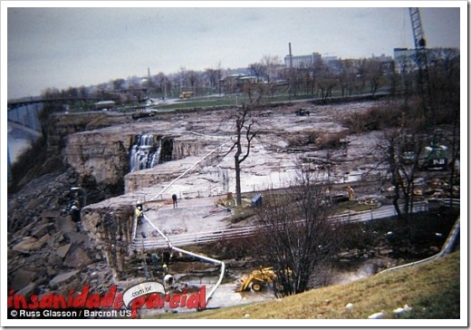 O objetivo inicial era retirar pedras que estavam soltas na base da cachoeira. Maaaaaas, o plano foi abandonado no início de novembro do mesmo ano por ser muito caro era uma empreiteira brasileira. Aproveitando que o curso do rio Niágara estava desviado, os engenheiros iniciaram uma reparação em algumas falhas descobertas no leito do rio e retardar a erosão gradual.