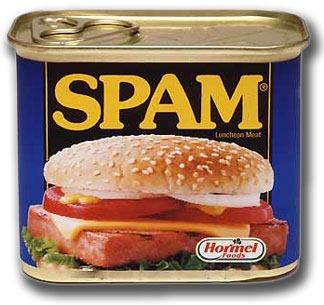 “Existem diversas versões a respeito da origem da palavra spam. A versão mais aceita, e endossada pela RFC 2635, afirma que o termo originou-se da marca SPAM, um tipo de carne suína enlatada da Hormel Foods Corporation, e foi associado ao envio de mensagens não-solicitadas devido a um quadro do grupo de humoristas ingleses Monty Python.