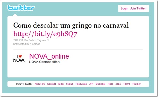 Mas hoje, na minha opinião, tudo passou dos limites. A revista Nova publicada pela editora Abril colocou no seu site um “tutorial” de como pegar gringos!